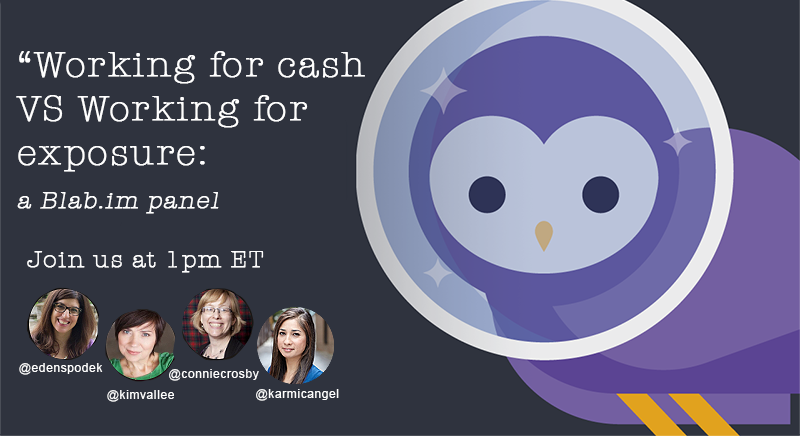 Tags: panel discussion, connie crosby, kim vallee, paid, work, free, exposure, wil wheaton, douglas karr, margaret morford, entrepreneur, hashtags, trending, Angela Misri, Eden Spodek, podcast, blab